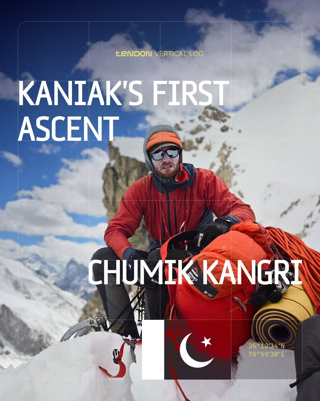 In the remote Saltoro Range of the Karakoram, Tendon ambassador Adam Kaniak joined top Polish alpinists Michał Czech and Wadim Jabłoński on a bold, pure alpine-style expedition — no fixed ropes, no support, just commitment. Their journey led them through a newly opened border zone, across untouched glaciers, and up the virgin south face of Chumik Kangri (6754 m).